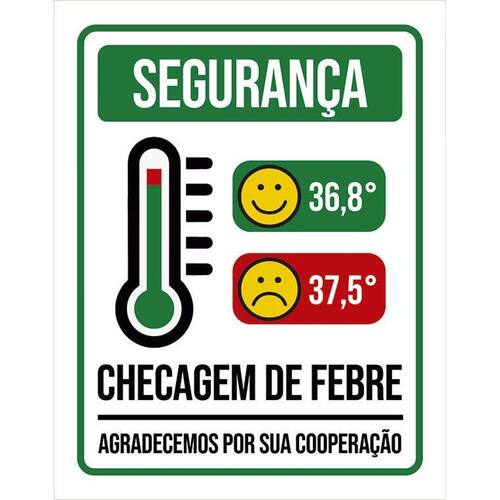 Kit 3 Placas Segurança Checagem De Febre Placas de sinalizaço fabricadas com poliestireno de alto impacto PSAI de 2mm e impressão ultravioleta.