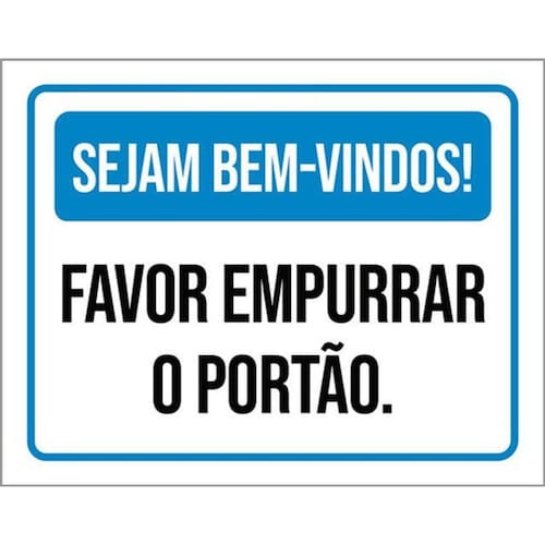 Kit 3 Placas Sejam Bem Vindos Favor Empurrar Portão 36x46 Placas de sinalizaço fabricadas com poliestireno de alto impacto PSAI de 2mm e impressão ultravioleta.