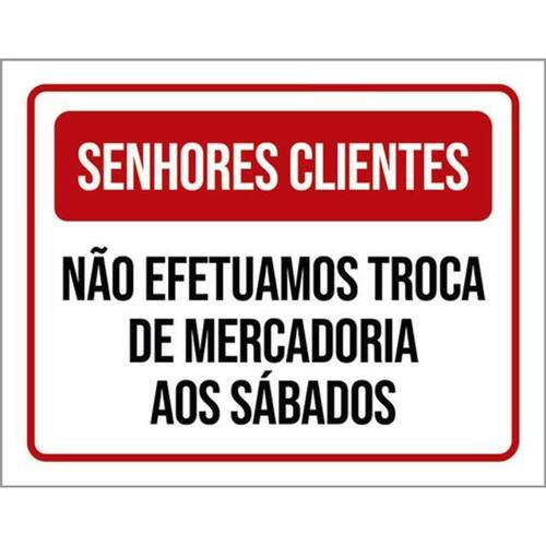 Kit 3 Placas Senhores Clientes Não Efetuamos Trocas Sábados Placas de sinalizaço fabricadas com poliestireno de alto impacto PSAI de 2mm e impressão ultravioleta.