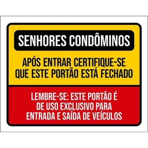 Kit 3 Placas Senhores Condôminos Portão Fechado