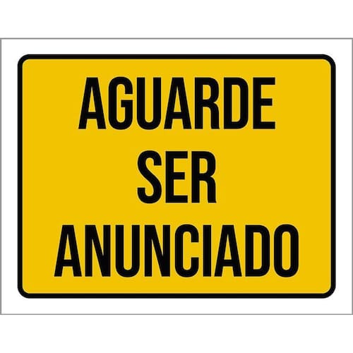 Kit 3 Placas Sinalização Aguarde Ser Anunciado Placas de sinalizaço fabricadas com poliestireno de alto impacto PSAI de 2mm e impressão ultravioleta.