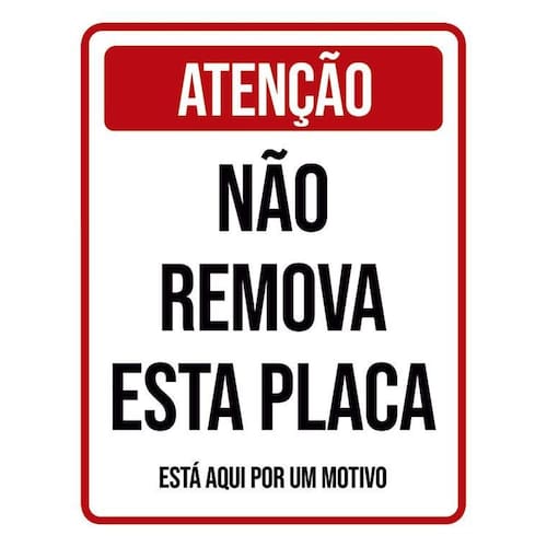 Kit 3 Placas Sinalização - Atenção Não Remova Esta Placa Placas de sinalizaço fabricadas com poliestireno de alto impacto PSAI de 2mm e impressão ultravioleta.
