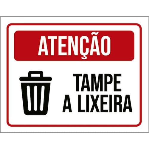 Kit 3 Placas Sinalização - Atenção Tampe A Lixeira Ícone