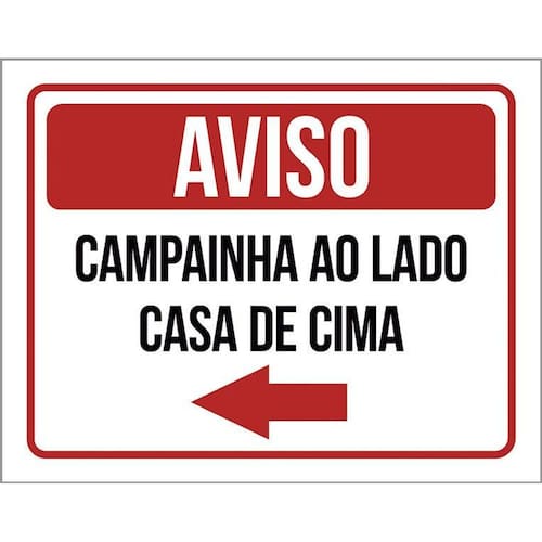 Kit 3 Placas Sinalização - Aviso Campainha Lado Casa Cima Placas de sinalizaço fabricadas com poliestireno de alto impacto PSAI de 2mm e impressão ultravioleta.