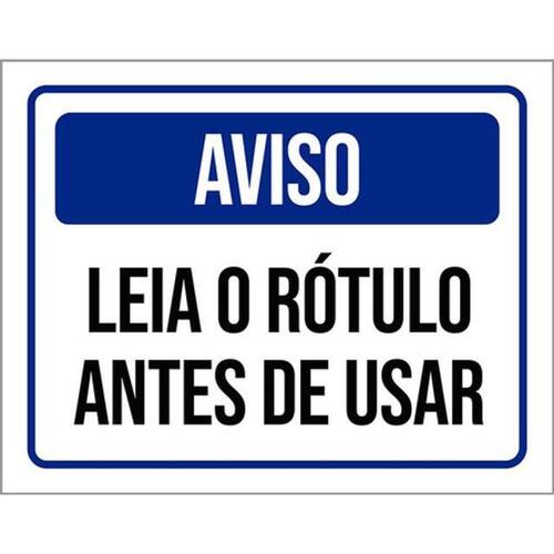 Kit 3 Placas Sinalização - Aviso Leia Rótulo Antes Usar Placas de sinalizaço fabricadas com poliestireno de alto impacto PSAI de 2mm e impressão ultravioleta.