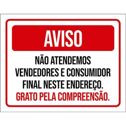 Kit 3 Placas Sinalização - Aviso Não Atendemos Vendedores Placas de sinalizaço fabricadas com poliestireno de alto impacto PSAI de 2mm e impressão ultravioleta.