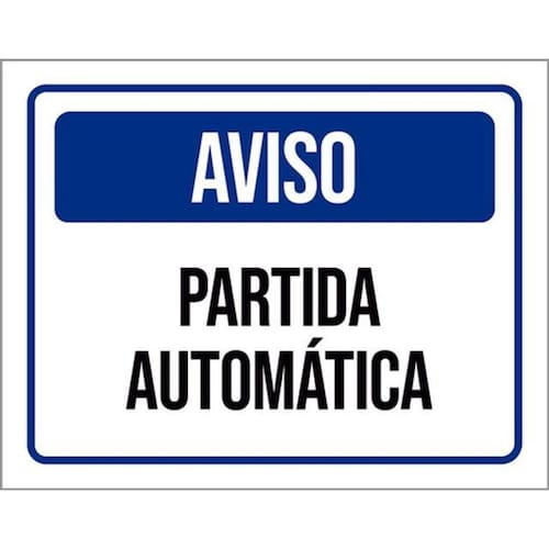 Kit 3 Placas Sinalização - Aviso Partida Automática Azul Placas de sinalizaço fabricadas com poliestireno de alto impacto PSAI de 2mm e impressão ultravioleta.