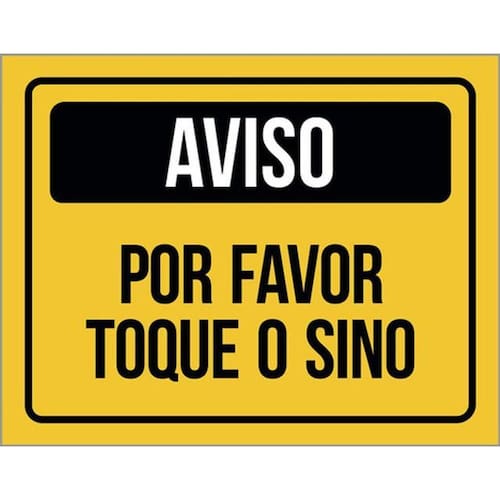 Kit 3 Placas Sinalização Aviso Por Favor Toque Sino Amarela Placas de sinalizaço fabricadas com poliestireno de alto impacto PSAI de 2mm e impressão ultravioleta.