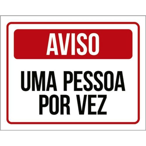 Kit 3 Placas Sinalização - Aviso Uma Pessoa Por Vez Vermelha Placas de sinalizaço fabricadas com poliestireno de alto impacto PSAI de 2mm e impressão ultravioleta.