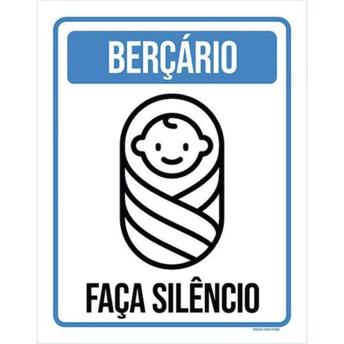 Kit 3 Placas Sinalização - Berçario Faça Silêncio Azul Ícone Placas de sinalizaço fabricadas com poliestireno de alto impacto PSAI de 2mm e impressão ultravioleta.