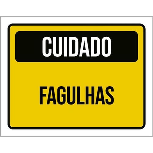 Kit 3 Placas Sinalização - Cuidado Fagulhas Amarela Placas de sinalizaço fabricadas com poliestireno de alto impacto PSAI de 2mm e impressão ultravioleta.