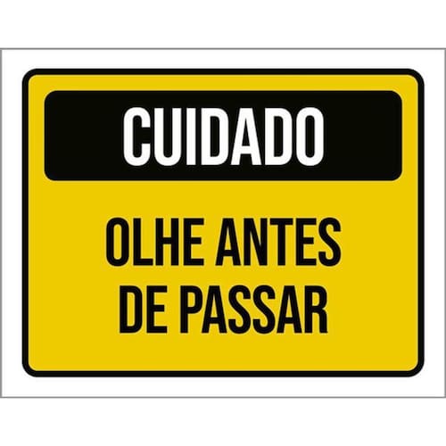 Kit 3 Placas Sinalização - Cuidado Olhe Antes De Passar Placas de sinalizaço fabricadas com poliestireno de alto impacto PSAI de 2mm e impressão ultravioleta.