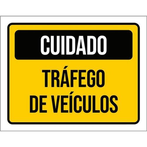 Kit 3 Placas Sinalização - Cuidado Tráfego De Veículos Placas de sinalizaço fabricadas com poliestireno de alto impacto PSAI de 2mm e impressão ultravioleta.