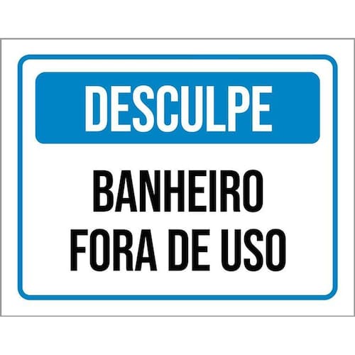 Kit 3 Placas Sinalização Desculpe Banheiro Fora De Uso Placas de sinalizaço fabricadas com poliestireno de alto impacto PSAI de 2mm e impressão ultravioleta.