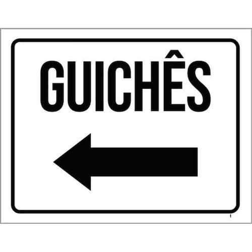 Kit 3 Placas Sinalização - Guichês Seta Esquerda Placas de sinalizaço fabricadas com poliestireno de alto impacto PSAI de 2mm e impressão ultravioleta.