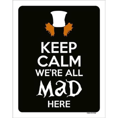 Kit 3 Placas Sinalização - Keep Calm We're All Mad Here Placas de sinalizaço fabricadas com poliestireno de alto impacto PSAI de 2mm e impressão ultravioleta.