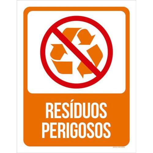Kit 3 Placas Sinalização - Lixo Laranja Resíduos Perigosos Placas de sinalizaço fabricadas com poliestireno de alto impacto PSAI de 2mm e impressão ultravioleta.