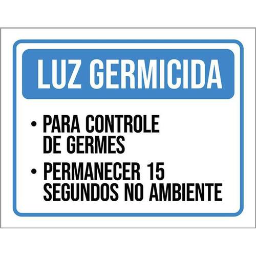 Kit 3 Placas Sinalização Luz Germicida Placas de sinalizaço fabricadas com poliestireno de alto impacto PSAI de 2mm e impressão ultravioleta.