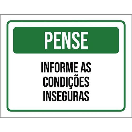 Kit 3 Placas Sinalização - Pense Informe Condições Inseguras Placas de sinalizaço fabricadas com poliestireno de alto impacto PSAI de 2mm e impressão ultravioleta.
