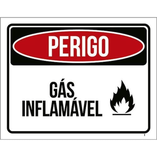Kit 3 Placas Sinalização - Perigo Gás Inflamável Placas de sinalizaço fabricadas com poliestireno de alto impacto PSAI de 2mm e impressão ultravioleta.