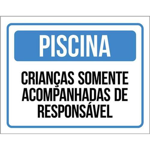 Kit 3 Placas Sinalização - Piscina Crianças Acompanhadas Placas de sinalizaço fabricadas com poliestireno de alto impacto PSAI de 2mm e impressão ultravioleta.