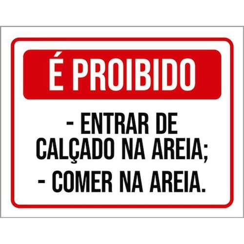 Kit 3 Placas Sinalização Proibido Entrar Calçado Areia Comer Placas de sinalizaço fabricadas com poliestireno de alto impacto PSAI de 2mm e impressão ultravioleta.