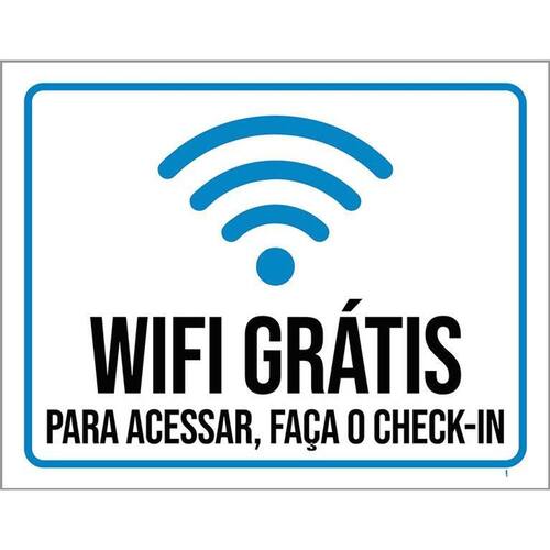 Kit 3 Placas Sinalização Wifi Acessar Faça Check-in Placas de sinalizaço fabricadas com poliestireno de alto impacto PSAI de 2mm e impressão ultravioleta.