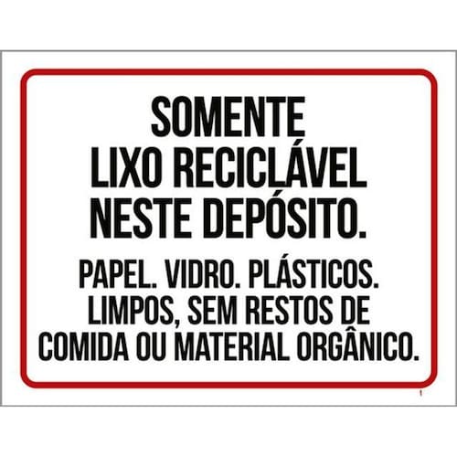 Kit 3 Placas Somente Lixo Reciclável Neste Depósito Vidro Placas de sinalizaço fabricadas com poliestireno de alto impacto PSAI de 2mm e impressão ultravioleta.
