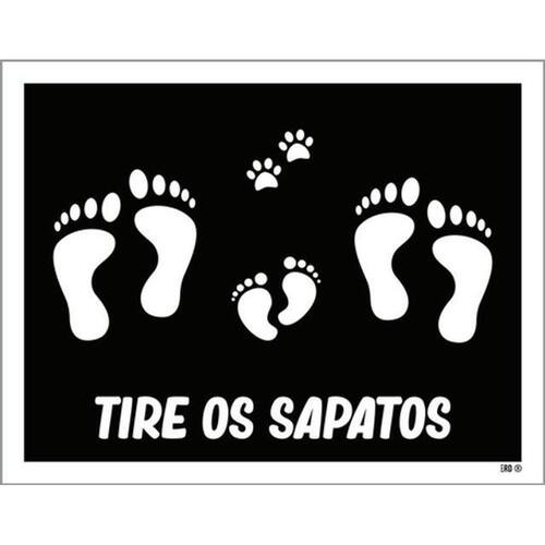 Kit 3 Placas Tire Os Sapatos Preta Pegadas 36x46 Placas de sinalizaço fabricadas com poliestireno de alto impacto PSAI de 2mm e impressão ultravioleta.