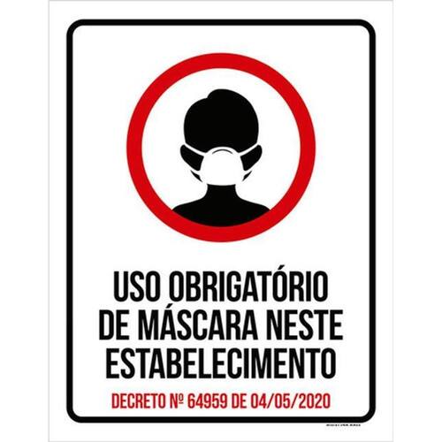 Kit 3 Placas Uso Obrigatório Máscara Estabelecimento Placas de sinalizaço fabricadas com poliestireno de alto impacto PSAI de 2mm e impressão ultravioleta.