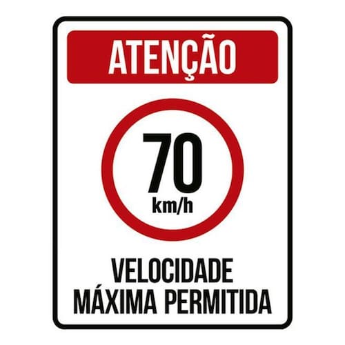 Kit 3 Placas Velocidade Máxima 70km Máximo 36x46 Placas de sinalizaço fabricadas com poliestireno de alto impacto PSAI de 2mm e impressão ultravioleta.