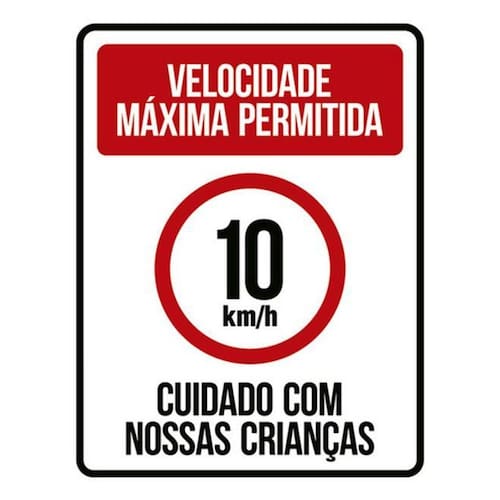 Kit 3 Placas Velocidade Máxima Permitida 10Km Crianças