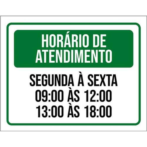 Kit 3 Placas Verde - Horário Atendimento Segunda Sexta Placas de sinalizaço fabricadas com poliestireno de alto impacto PSAI de 2mm e impressão ultravioleta.