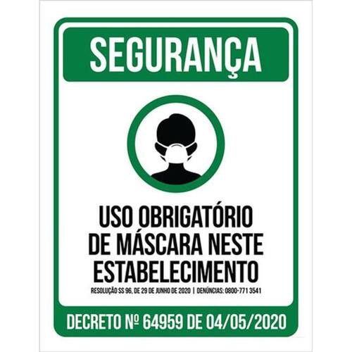 Kit 3 Placas Verde Uso Obrigatório Máscara Estabelecimento Placas de sinalizaço fabricadas com poliestireno de alto impacto PSAI de 2mm e impressão ultravioleta.