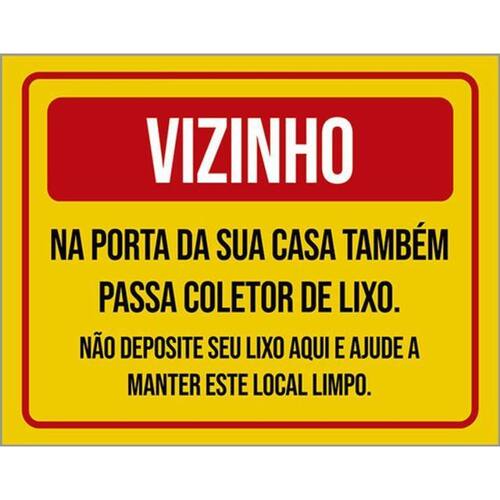 Kit 3 Placas Vizinho Porta Casa Coletor Lixo