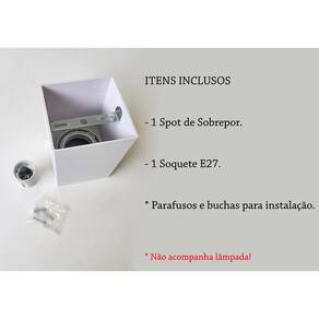 - 1 Spot de Sobrepor. - 1 Soquete E27. Parafusos e buchas para instalação.