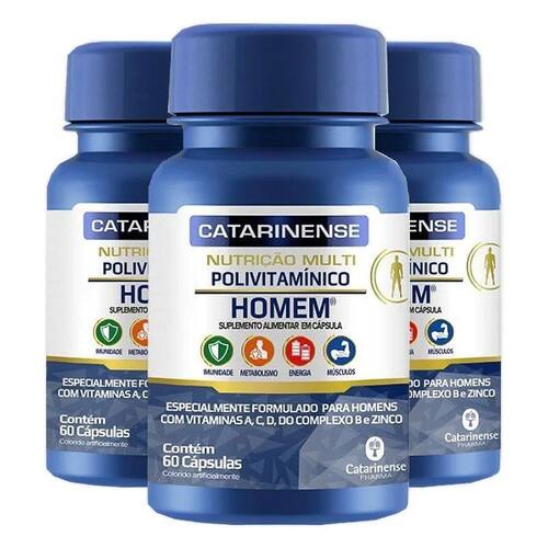 Kit 3 Polivitamínico Suprabio Homem Catarinense 60 cápsulas Homem foi desenvolvido com base nas necessidades nutricionais específicas dos Homens. Sua composição de nutrientes foi cuidadosamente escolhida de modo a complementar a ingestão de vitaminas e minerais, essenciais para a saúde e o bem-estar dos homens. Não engorda e não contém glúten. Ingestão Recomendada Recomenda-se ingerir 1 cápsula ao dia, que atende a Ingestão Diária Recomendada IDR descrita na tabela de Informação Nutricional. Deve ser ingerido com líquido. Marca: Não Informado Ean: 7898713097027