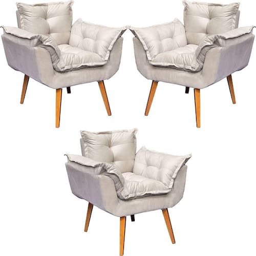 KIT 3 POLTRONAS ALICE SUEDE CORES PÉ TRAPÉZIO 30CM CASTANHO