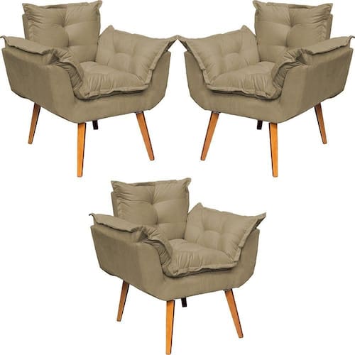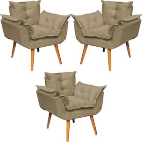 KIT 3 POLTRONAS ALICE SUEDE CORES PÉ TRAPÉZIO 30CM CASTANHO