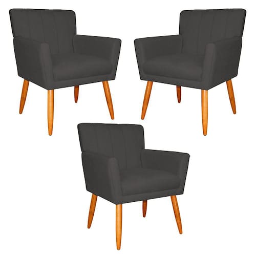 Kit 3 Poltronas Decorativa para Sala de Estar Cecília Suede Cinza - Montanaris Decor chegou uma grande novidade para você, que deseja um produto que lhe trará satisfação e firmeza. A Poltrona Cecília possui matéria-prima de ótima qualidade, e com o melhor tipo de espuma que irá garantir conforto e durabilidade do produto. Sem falar do seu Design única e diferenciada, ela se adapta em qualquer lugar que desejar!