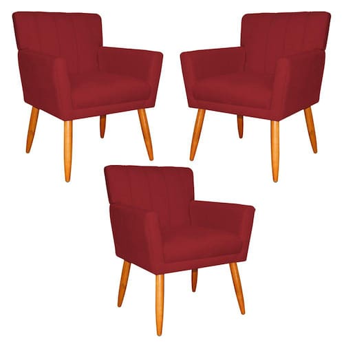 Kit 3 Poltronas Decorativa para Sala de Estar Cecília Suede Vermelho - Montanaris Decor