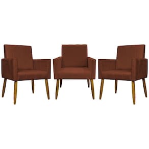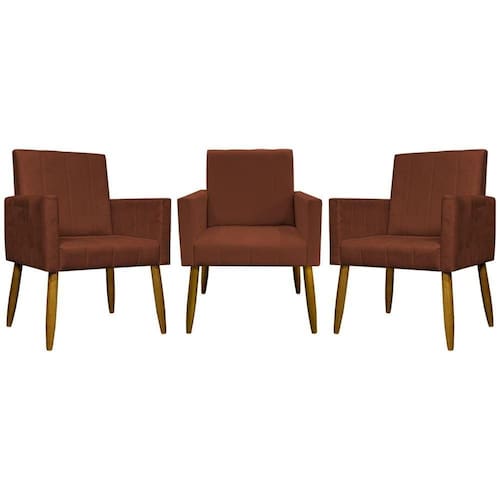 KIT 3 POLTRONAS MARI SUEDE CORES PE PALITO 30 CM CASTANHO