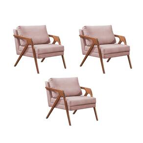 Kit 3 Poltronas Decorativas Mona Premium Base Madeira Maciça Veludo Rose - Rosa