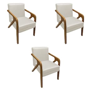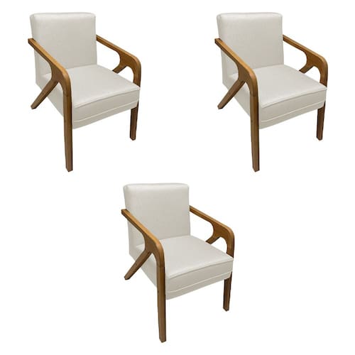 Kit 3 Poltronas Decorativas Pés em Madeira Maciça Monaco Linho Crú - Bege