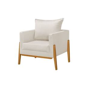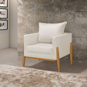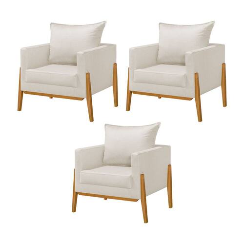 Kit 3 Poltronas Living Base e Pés em Madeira Maciça Madagascar Linho Crú - Bege