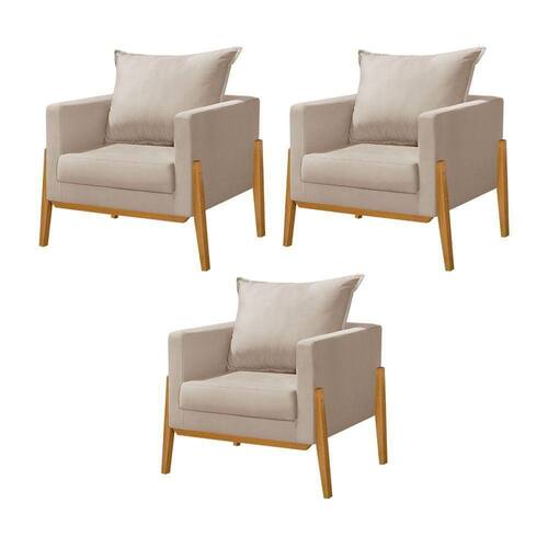 Kit 3 Poltronas Living Base E Pés Em Madeira Maciça Madagascar Veludo Bege - Cor: Bege A Poltrona Decorativa Madagascar é uma combinação perfeita de conforto e estilo, com pés em madeira maciça de eucalipto. Essa poltrona oferece uma adição robusta e durável ao seu espaço, permitindo que você relaxe com total tranquilidade.CaracterísticasTipo: Poltrona Modelo: Madagascar Tecido: Veludo Cor: Bege DIMENSÕES DO PRODUTOAltura: 88cmLargura: 84cmComprimento: 75cmInformações adicionais:- Materiais da estrutura: Madeira ecológica, MDF- Material dos pés: Madeira Maciça ecológica - Cor da madeira: - Requer montagem: Sim- Limpeza: Não usar produtos abrasivos, usar apenas peno seco e limpo.- Peso máximo suportado: 100kg- Garantia: 3 Meses à partir da emissão da ÇÃOAS IMAGENS SÃO MERAMENTE ILUSTRATIVAS E PODEM SOFRER VARIAÇÕES DE COR E PEQUENOS DETALHES DE ACORDO COM O SEU MONITOR, ILUMINAÇÃO DO AMBIENTE E ATÉ MESMO A SUA PERCEPÇÃO 3 Poltronas Living Base e PÃs em Madeira MaciÃa Madagascar Veludo Bege Marca: Villa Casa Decor