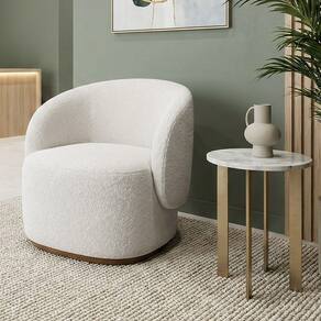 Estrutura: madeira seca em estufa; Espuma do assento: D28; Espuma do encosto e laterais: D20; Base: fixa com pés em ABS; Acabamento inferior: courino marrom simulando madeira; Revestimento: bouclê italiano.Vendido e entregue por LUZ DO LAR MOVEIS
