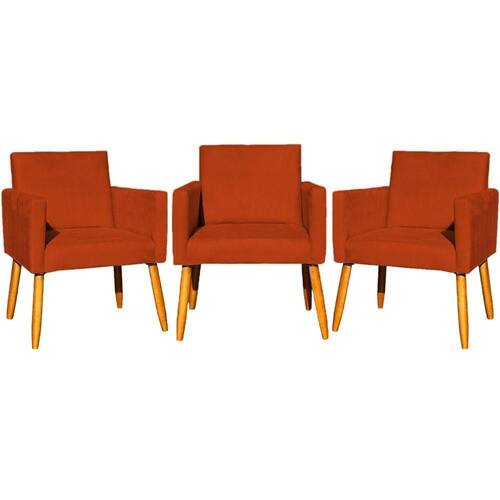 Kit 3 Poltronas Para Recepção Nina Suede Cores Pé Palito 30cm Castanho - Suede