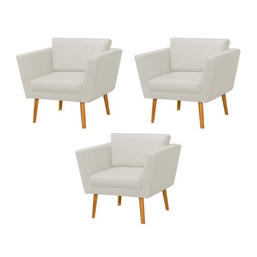 Kit 3 Poltronas Retrô Pés Palito em Madeira Paraty Linho Crú - Bege