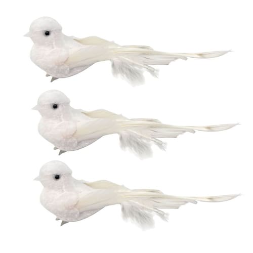 Kit 3 Pombas Brancas Natal Plumas e Lantejoulas 12cm